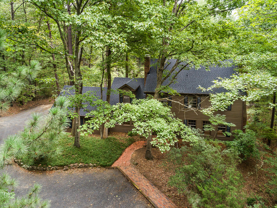 SCENIC HILLTOP VIEWS! Retreat to 5.4 acres of privacy on the edge of Lake Forest in the heart of town. Spacious 2-story with full basement, larger rooms, 3 wood-burning fireplaces, hardwood floors. Central, well-lit kitchen with Dacor gas range. Owner's bedroom with large walk-in closet and adjoining room for library, reading, yoga. Versatile floorplan accommodates multiple uses -- 16x23 sunroom can be dining/great room/media; 30x17 family room with wall of built-ins can be expansive office. Finishable basement is heated and cooled, has fireplace, flooring, higher ceilings, full bath and door to outside -- perfect for apartment, rec room, gym. Outdoor space galore for hiking trails, exploring and communing with nature atop the 25x21 wraparound deck. No HOA. Minutes to downtown Chapel Hill, Whole Foods, I40 access. Truly a one-of-a-kind!
