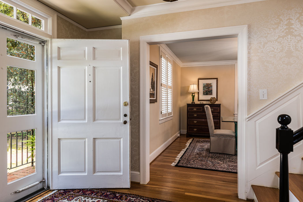 Beautifully renovated 1940 gem with 3,000+ square feet of elegant living space on 1/2-acre cul-de-sac seamlessly combines classic charm with contemporary updates. Deluxe kitchen is the heart of the home — a culinary haven featuring large island with soapstone top and antique heart pine sides, equipped with Wolf 6-burner gas range, Miele dishwasher and charming Shaw's original Fireclay farmhouse sink. Adjoining the kitchen is the inviting family room, complete with Heatilator fireplace with wrap-around mantle and soapstone surround, plus natural white oak floors with 5-inch planks adding warmth and elegance to both rooms. Formal dining room exudes sophistication with crown moldings, plantation shutters and gleaming hardwood floors — ideal for entertaining. Cozy living room with fireplace creates a warm ambiance for gatherings. Main floor office/library offers a quiet retreat for work or study. Upstairs, three spacious bedrooms and two beautifully renovated baths provide comfort and privacy for family and guests. Enjoy fabulous outdoor spaces including a screened porch, spacious deck, fenced yard and courtyard-style patio — perfect for al fresco dining or unwinding after a long day. Located in a coveted neighborhood just blocks from the Duke Main West Campus, this home is ideally situated near local parks, shops and dining options. A truly special home!